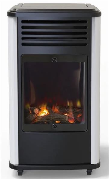Prachtige design kachel werkzaam op propaan, butaan of LPG gas, geen afvoer nodig! Compleet met gas slang en gas drukregelaar. Voor de haard is er geen afvoerkanaal nodig. Deze mobiele gaskachel is geschikt en gekeurd voor alle geventileerde ruimtes. Met zuurstof- en koolmonoxide sensor en katalysator verbranding.