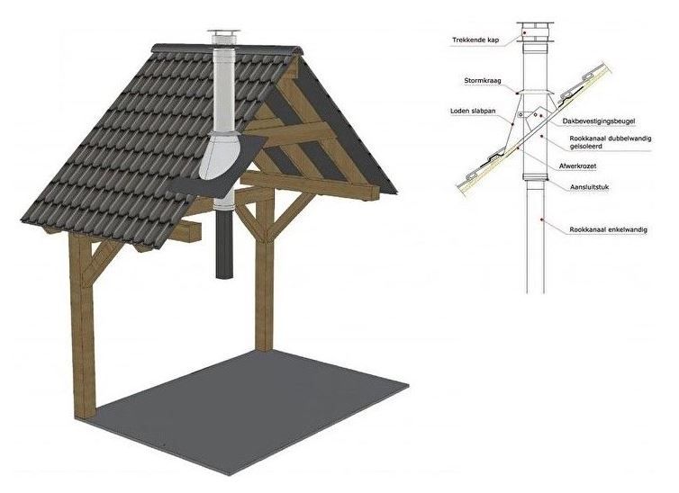 Dakdoorvoer houtkachel | Zwart complete set