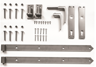 Inclusief hengen, duimen, aluminium deurklink en alle benodigde bevestigingsmateriaal.
