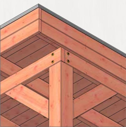 De Mensa buitenverblijven en veranda's kenmerken zich door de robuuste constructie uitgevoerd in onbehandeld, gedroogd en geschaafd Douglas hout. De palen zijn uitgevoerd in 145x145mm en de ringbalk in 45x145mm.